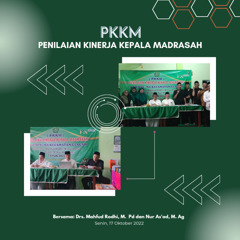 Kegiatan Penilaian Kinerja Kepala Madrasah (PKKM) adalah program yang dilaksanakan untuk mengetahui tentang kualitas kinerja kepala madrasah dalam melaksanakan tugasnya sebagai Kepala Madrasah. Kegiatan ini merupakan suatu bentuk upaya pengawasan binaan untuk dapat mengembangkan kompetensi lembaga pendidikan madrasah.